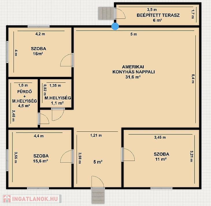 Amerikai konyhás nappali, 3 szoba, fürdő+ mellékhelyiség, külön mellékhelyiség