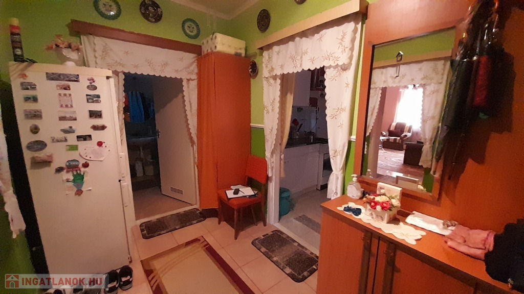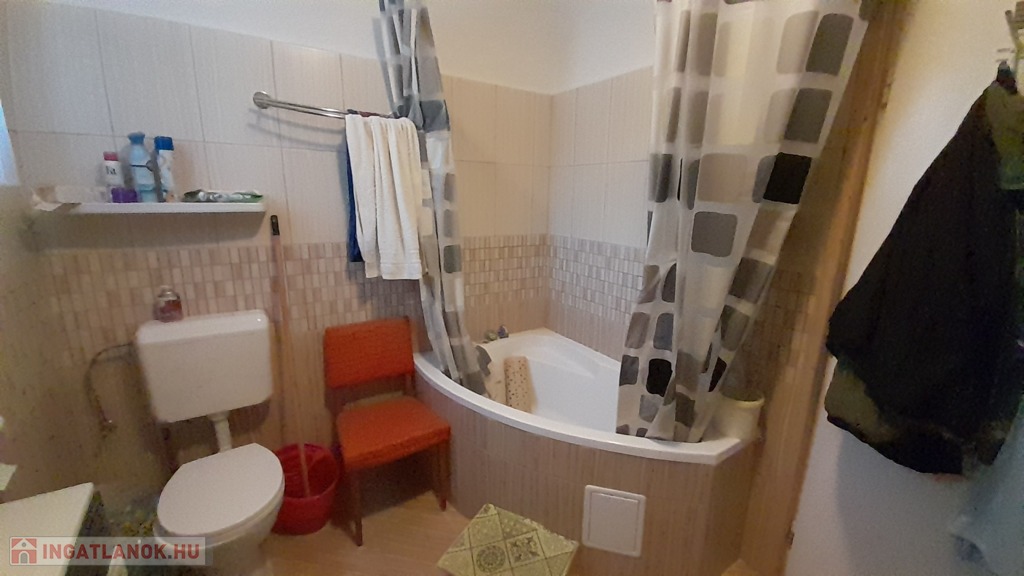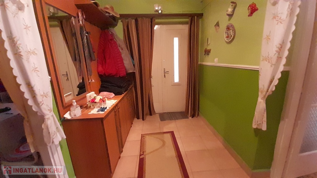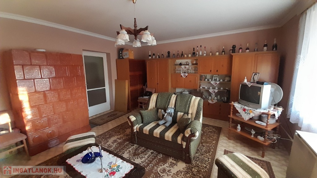 Az ingatlan 1984-ben épült, azóta a jelenlegi tulajdonosok gondosan karbantartják. A ház kőből épült, palával fedett a tetőszerkezete, nyílászárói eredeti fa anyagból készültek melyeket nem cserélték ki, mivel kifogástalan állapotban vannak. Szobák falai festettek. 50-60-cm válaszfalakkal rendelkezik, illetve a főfalak elérik a 80 cm vastagságot. Az első szoba aljzata jelenleg linóleum borítja, a második szobát laminált padló, illetve a konyhát, előteret és a fürdőszobát járólap. A szobákban beépített cserépkályha van, ami használható, de gázkonvektoros fűtési lehetőségünk is adott minden helyiségben. A fürdőszoba 2 éve lett teljes körűen felújítva, ebben beletartozik a vízhálózat csere illetve a falak csempézése, a sarokkád beépítése is. A konyha és az étkező egy helyiségben található, innen nyílik a spájz. Az ingatlan részben bútorozottan eladó.