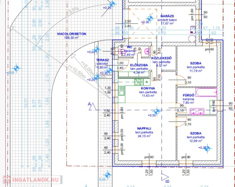 Vasbeton sávalap, Rapid X-Therm PTH 30CM tégla főfalak 20 cm-es dryvit hőszigeteléssel. Műanyag homlokzati nyílászárók 3 rétegű üveggel. Beton födém 20 cm ásványszálas hőszigeteléssel. Fűtés és meleg víz hőszivattyúról, mindenhol padlófűtés . Antracit beton cserép héjazás. Festés, burkolás, szaniterek, belső ajtók választhatók. A hideg burkolatok 7000 Ft./m2 árig , meleg burkolatokat 4500 Ft./m2 árig, a belső ajtókat 50.000 Ft./db. árig tartalmazza a vételár. Riasztó vezetékelve, klíma becsövezése, rejtett redőnytok kialakítás,alumínium redőnyök fehér színben, elektromos kiállások a redőnynek , elektromos kiállás a kapuknál. H tarifa kiépítve, kocsibeálló viacolor (10x20-as) szürke, kiskaputól bejáratig Viacolor (10x20-as) szürke, a ház körül 40 cm széles védőjárda szegélykőből, közé apró kaviccsal betöltve.