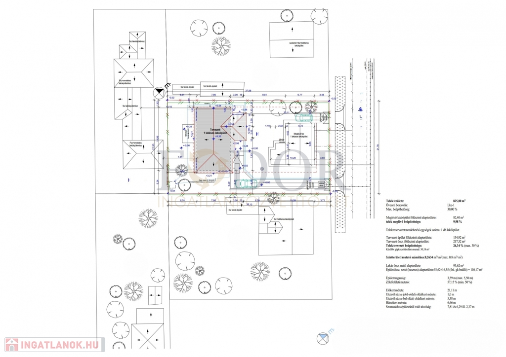A 825 nm-es telekre 2db önálló családi ház került kialakításra, Az utcafront felől egy 50 m2-es önálló kis házikó áll. A hátsó ingatlan egy külön bejáraton érhető el, kerítéssel teljesen le van választva. A privát szféra adott. Az ingatlanhoz tartozó telekterület 464 m2. Jogilag rendezett, osztatlan közös tulajdonban van, telekhasználati megállapodással rendelkezik.