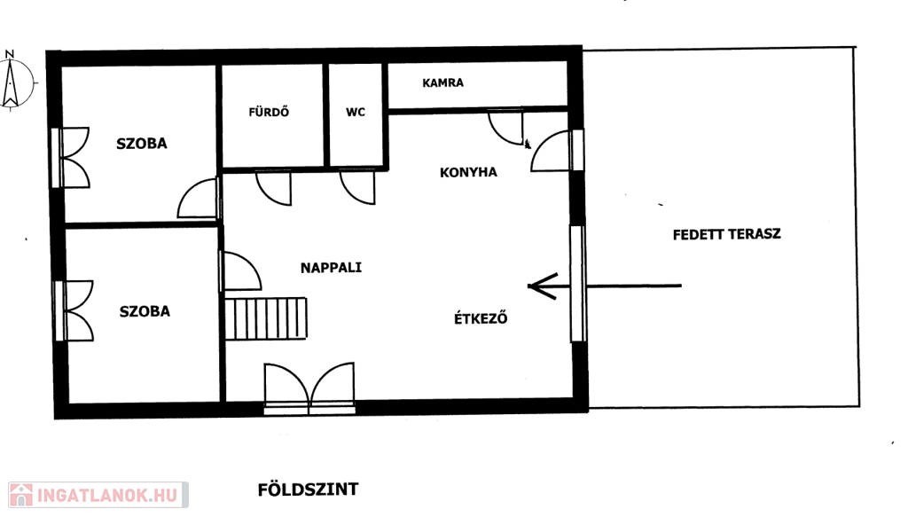 A konyha mellett van a kamra. A nappaliból nyílik két külön bejáratú