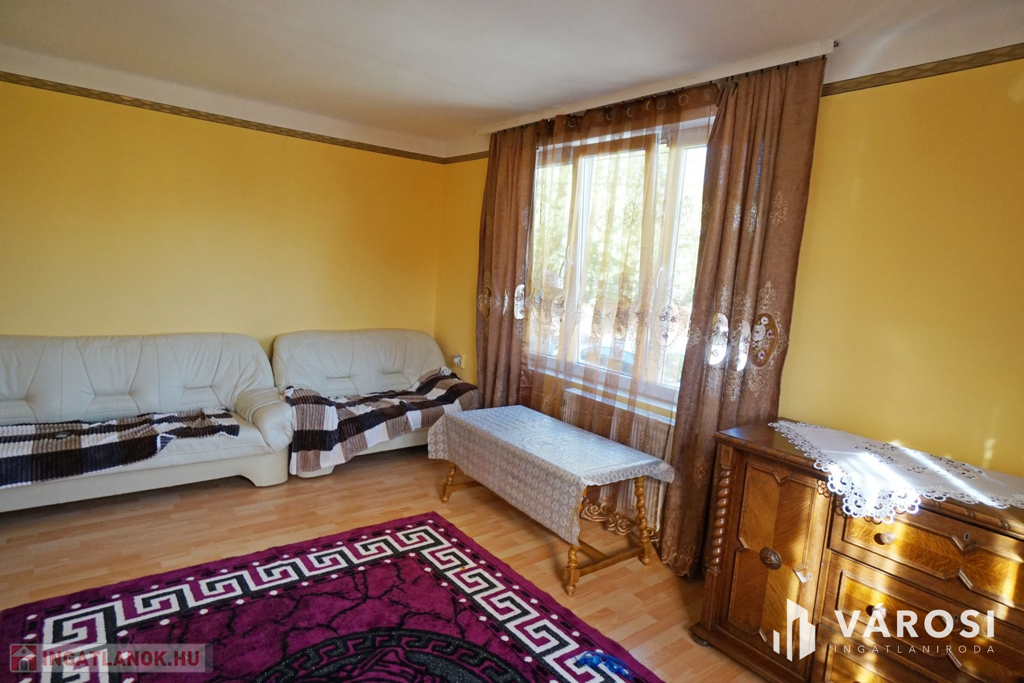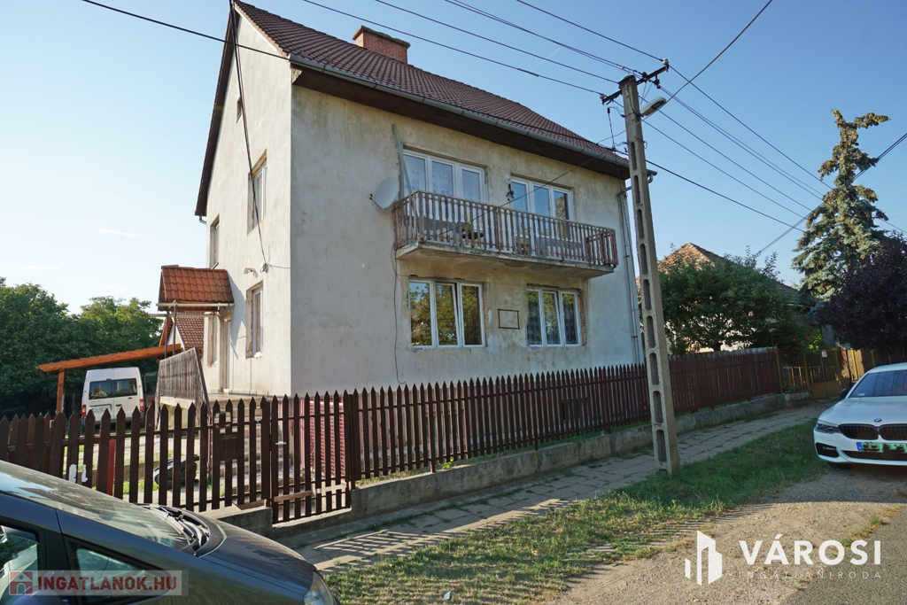 160 m2-es családi ház, 70 m2 pincével, 60 m2-es melléképülettel.