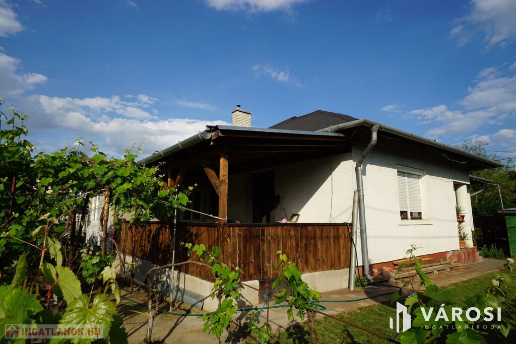 Gyál közkedvelt részén a Pesti út közelében eladó 2000-ben épült, 92 nm-es családi ház, 20 m2-es fedett terasszal és a teraszról nyíló 12 m2- es tárolóval.A tároló nincs a vázrajzon feltüntetve ezért csak kp.- vel vásárolható meg. Könnyűszerkezetes kisebb autónak megfelelő garázzsal, 550 nm-es önálló helyrajzi számú telken. Az ingatlan fedett belépőjéből nyílik a nappali-konyha étkező (33 nm) DNY-i teraszkapcsolattal. A konyhához 4 nm-es kamra is tartozik. Az előszobából megközelíthető a fürdőszoba( 8,40 nm), külön WC, és két egyforma méretű szoba 17,60 nm.A nappali igény esetén egyszerűen külön választható az étkezőtől egy válaszfallal,amennyiben 3.szoba szükséges. A nappali-étkezőből a 20 nm-es fedett teraszon át a gondozott kertbe jutunk. Az ingatlan 2000-ben épült, Porotherm tégla falazatú, beton födémes. Az udvarban gyűrűs kút hidrofor aknával.. Kertje gondozott gyümölcsfákkal és szőlő lugasokkal beültetett.Buszmegálló 100 m, iskola,piac, üzletek 300 m-en belül elérhető.