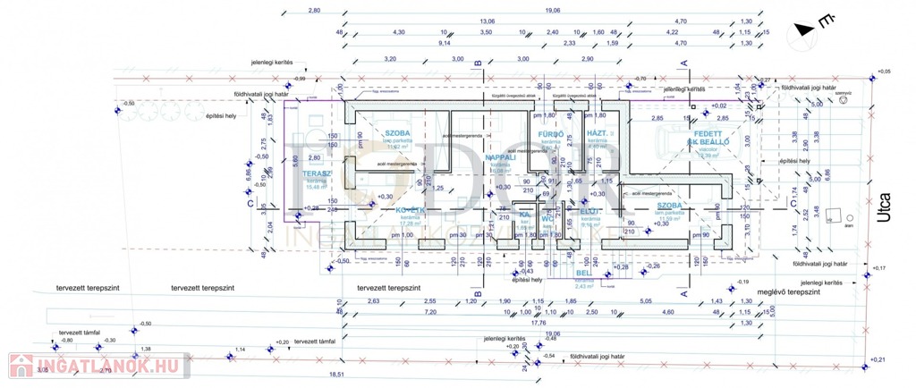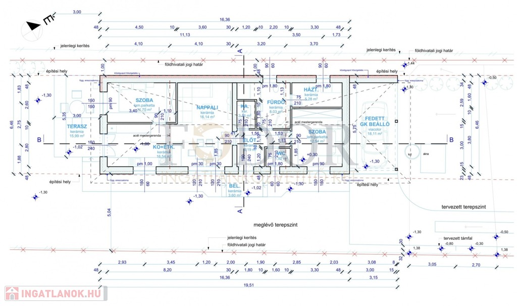 • Tartozik hozzá fedett gépkocsibeálló 19,39 m² és terasz 16,36m²