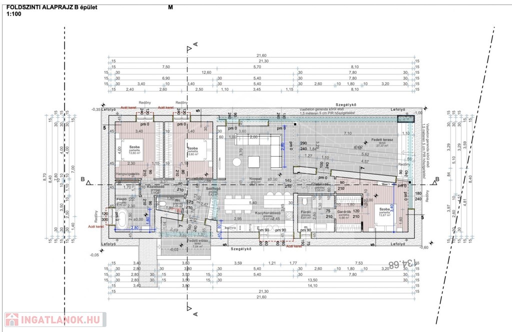• Az lakóépület Porothterm (Thermo Rapid falazati rendszer) 44cm-es okos téglából készült, mely már nem kap szigetelést, hisz ez már megfelelel a mai korszerű szigetelési elvárásnak. Tetőszerkezete 35 fokos, mely betoncserepes fedést kapott, födéme 2x15cm-es ásványgyapot szigetelést kap. Részletekért személyesen.