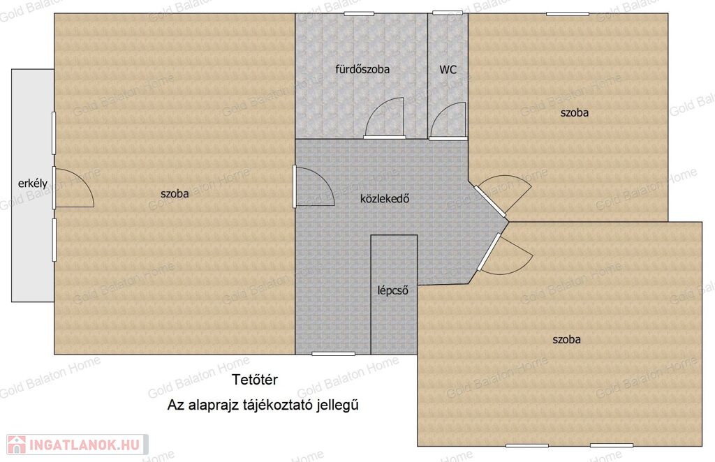 - Tetőtéri helyiségek: szoba 25 m2, szoba 21 m2, szoba 12 m2, erkély 4,5 m2, fürdőszoba 5,5 m2, külön WC 1,5 m2, közlekedő 12 m2.