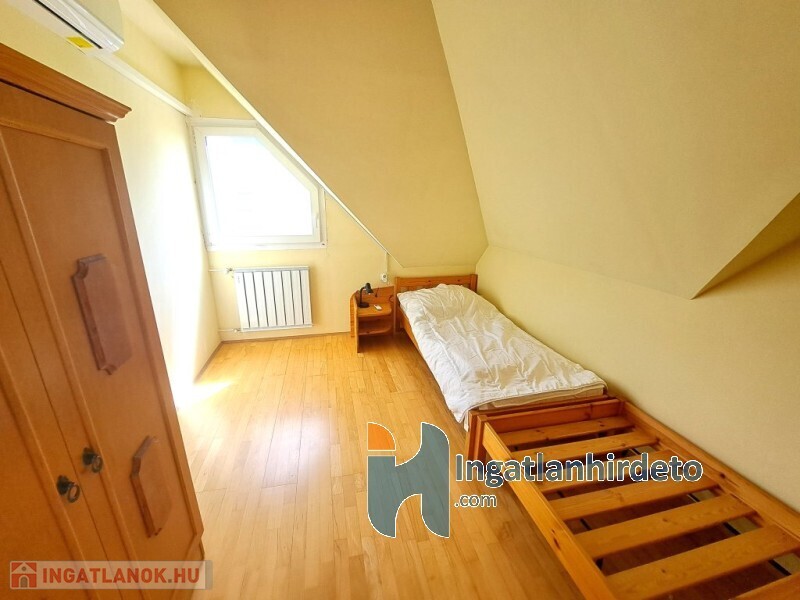 Elhelyezkedése: Belterület Tájolása: Dél-nyugai tájolású Állapota: Kiváló Komfort besorolása: összkomfortos Építési éve: 2006 Alapterülete: 297 m2 Telekterülete: 719 m2 Szobák száma: 8 + 4 szoba Felújított: Felújított Felújítás éve: 2022 Felújítás során elvégzett munkák: Festés, Egyéb Közművek: Gáz, Víz, Villany, Csatorna Gázellátás: Vezetékes Vízellátás: Vezetékes víz Melegvíz-ellátás: Gázkazán Áramellátás: 230V/380 V Fűtés módja: Gáz Fűtés típusa: Cirkó Homlokzat állapot: Jó Építési mód: Tégla Tető formája: Magas Tető anyaga: Cserép Parkolási lehetőség: Garázsban Kilátás: Utcafronti kilátás, Udvari kilátás Jellemzői: Két bejárat, Redőny, Fűtött garázs, Légkondicionáló, Udvari terasz, Beépített konyhabútor, Kert, Kerítés, Medence, Térkő Energetikai besorolás: B Egyéb jellemzők: Erkély, Terasz Tv, Internet: Internet Közelben: Orvosi rendelő, Bolt, Gyógyszertár, Vendéglátó egység, Reptér, Autópálya Terhelések: Tehermentes ingatlan Eladásra vonatkozó információk: Az ár tartalmazza a teljes berendezést, Azonnal beköltözhető