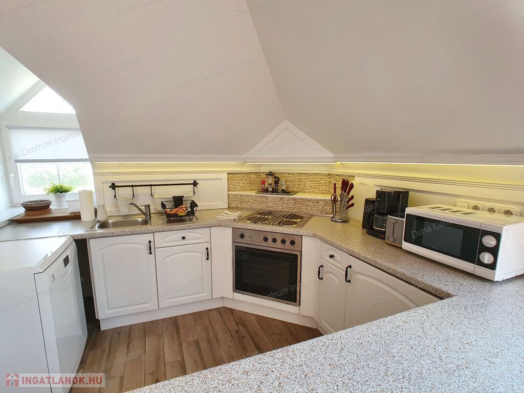 A földszinten  kettő 40 m2  apartman, míg a tetőtérben egy tágas  90 m2 apartman található.Az ingatlan felszerelése: