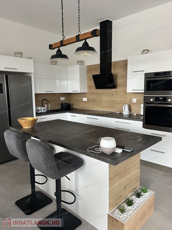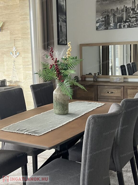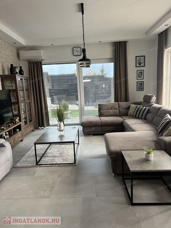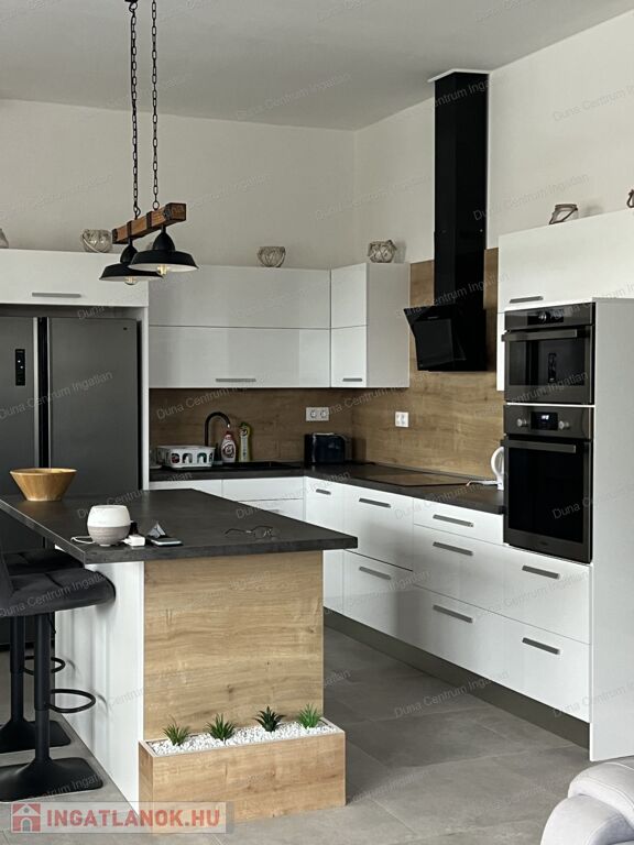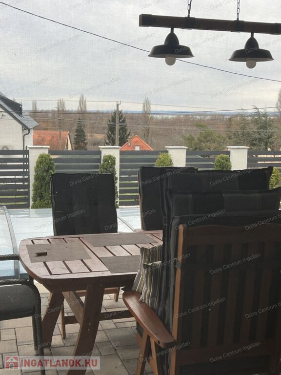 Modern, panorámás családi ház medencével, teljes bútorzattal Gyenesdiáson eladó ! Az ingatlanban tágas, világos nappali, amerikai konyha étkezővel, kettő fürdőszoba, három szoba, illetve egy külön bejárattal is megközelíthető apartman / nappali-háló, konyha, fürdőszoba / található. A házban központi gázfűtés található, padlófűtéses rendszerű, illetve hűtő-fűtő klímák kerültek felszerelésre, ami napelemekkel kiegészített. A kert parkosított, gondozott. Fedett, kétállású gépkocsibeállóban lehet parkolni. RUGALMAS fizetési feltételek ! Hívjon a részletekért !!