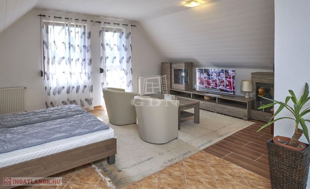 In Gyenesdiás, nur 500 m vom Balaton entfernt, biete ich ein vollständigf renoviertes, zweistöckiges Familienhaus auf einem 1265 m2 großen, parkähnlich gestalteten Grundstück zum Verkauf an, das sich ideal für das Zusammenleben mehrerer Generationen eignet.
