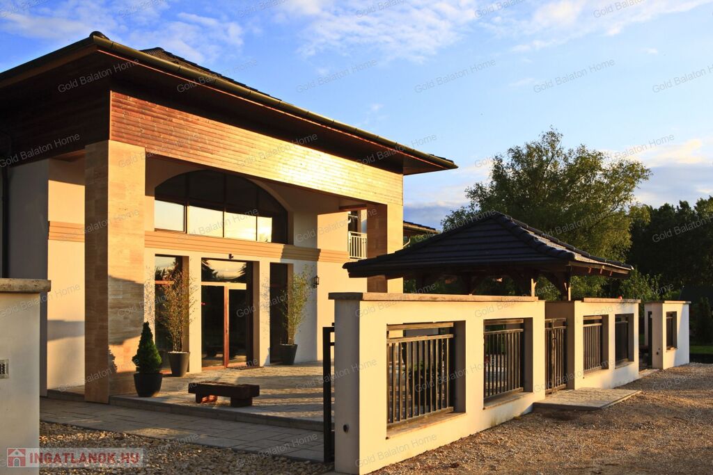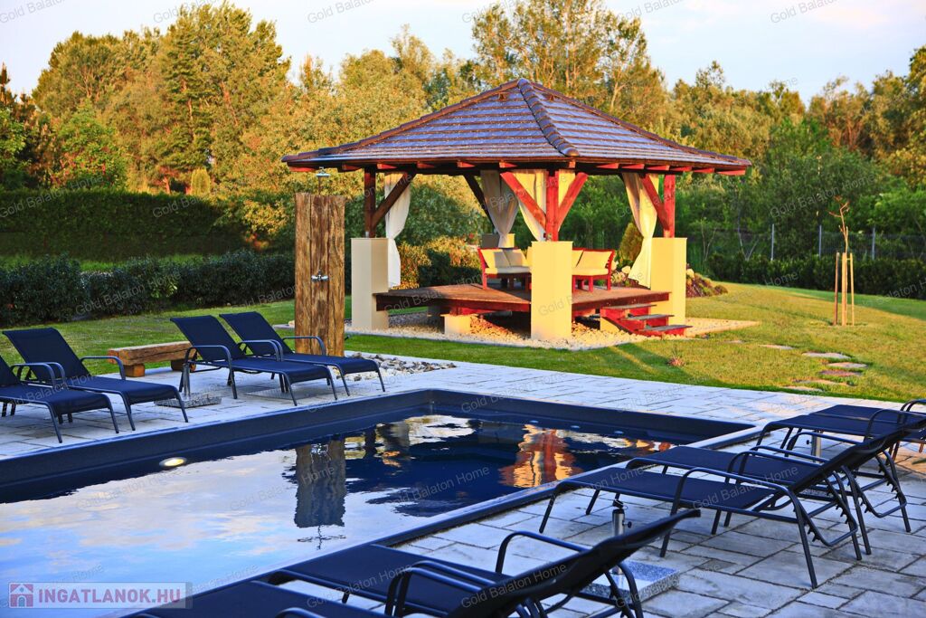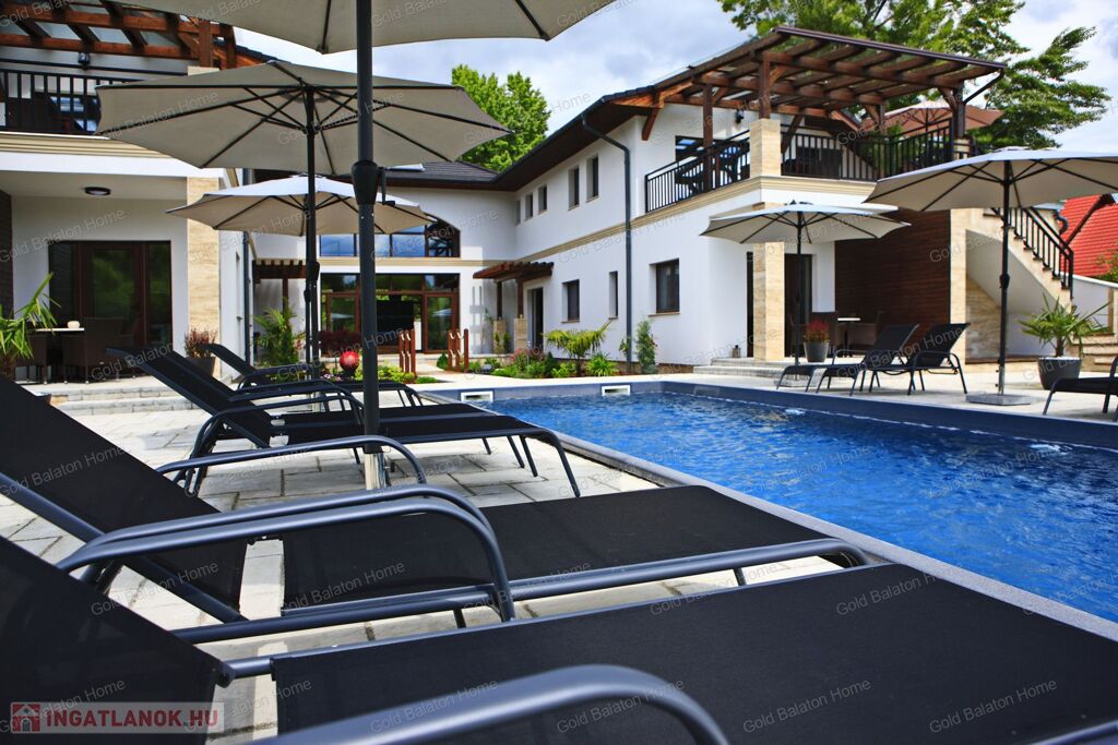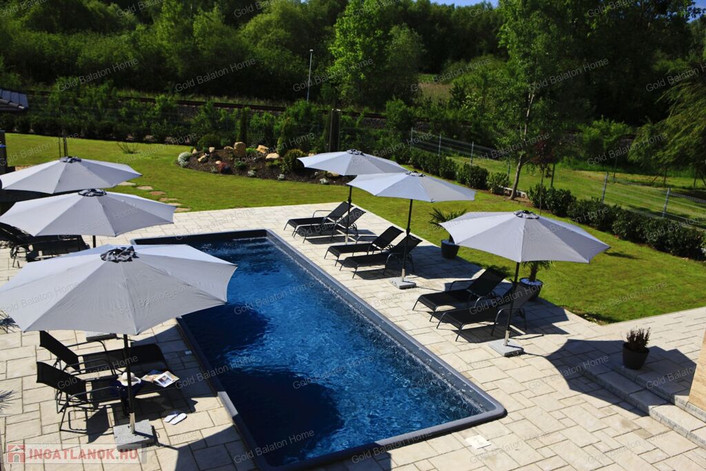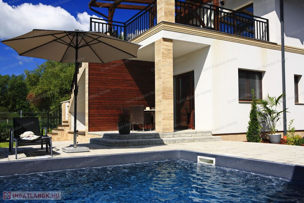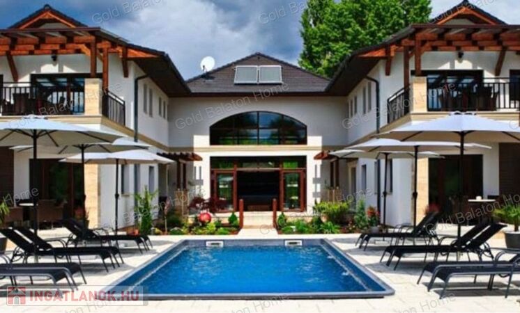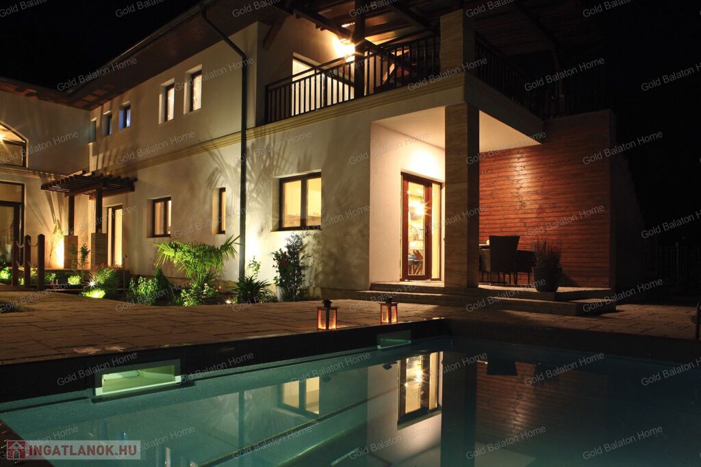 Minőségi anyagokból épült ház, mely külső medencével, belső wellness részleggel kínál testi, lelki felüdülést. A villa kertjét különleges növények kompozíciója, kis kerti tó, esti világítás ékesíti.