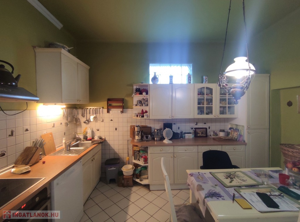 A lakás közepes állapotban van, de műszakilag fel lett újítva. A két lakás külön mérőórákkal rendelkezik. A elektromos hálózat (új biztosíték tábla) és a fűtés rendszer 10 éven belül lett korszerűsítve. Új típusú Western gázcirkó gondoskodik a fűtésről, amit egy vegyes tüzelésű kazán egészít ki. A konyhában a gépek (sütő, mosogató gép, bojler, hűtő) 1,5 éve lettek lecserélve. Műanyag bejárati ajtó újszerű, műanyag redőnyös ablakok lettek kialakítva mind a két lakrészben. Az eresz csatorna cseréje is megtörtént már. A fűtés átalánydíja az egész ingatlanban 70-80 ezer ft/hó. A belmagasság 3 méter.