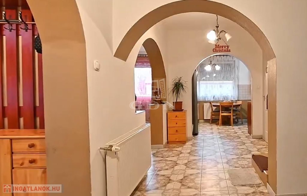 - Földszint: kellemes előtér, hangulatos, boltíves közlekedő, szoba, óriási nappali, tágas, felszerelt konyha, külön nyíló nagy kamrával, sarokkádas fürdő, külön toalett.