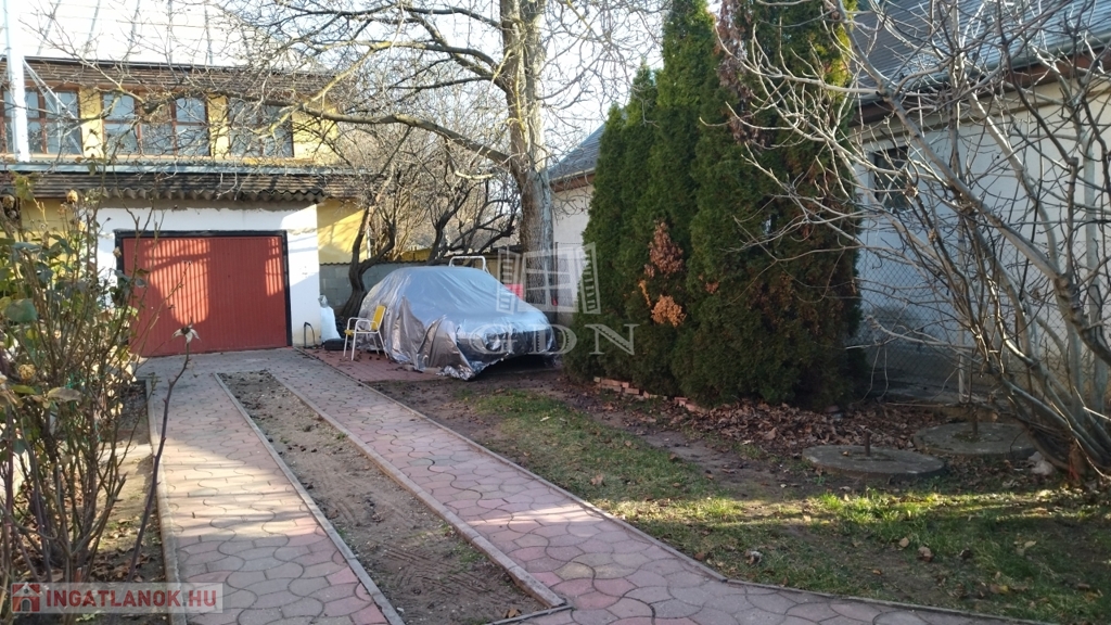 Zárható garázs. Diófa árnyékában, kellemes grillező, bográcsozó hely lett kialakítva.
