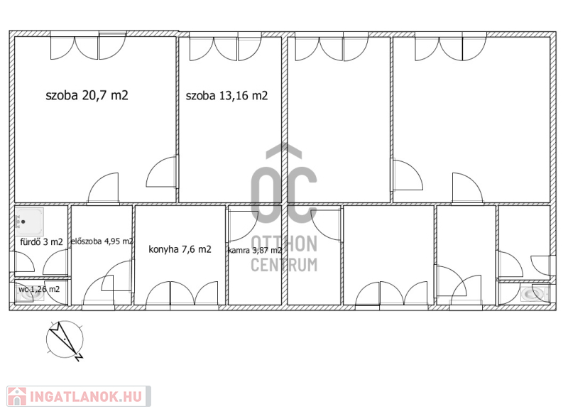Mindkét házrészben két szoba, konyha, fürdő, wc és kamra található.
