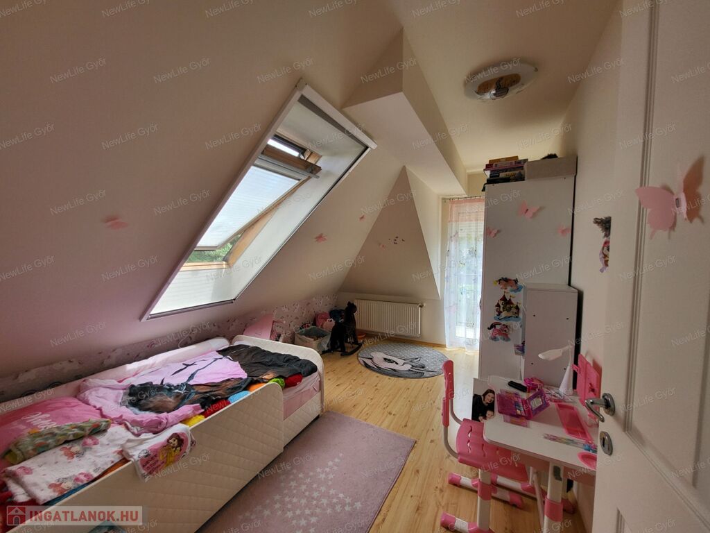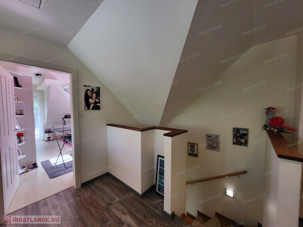 Az emeletre egy kényelmes, biztonságos lépcső vezet fel. Itt három külön bejáratú, kényelmes szoba vár, amelyek közül kettő ERKÉLYKAPCSOLATOS – ez ritka és rendkívül praktikus. A hatalmas, kádas fürdő külön WC-vel, illetve a gardrób és egy egyedileg tervezett közlekedő igazán egyedivé teszi ezt a szintet.