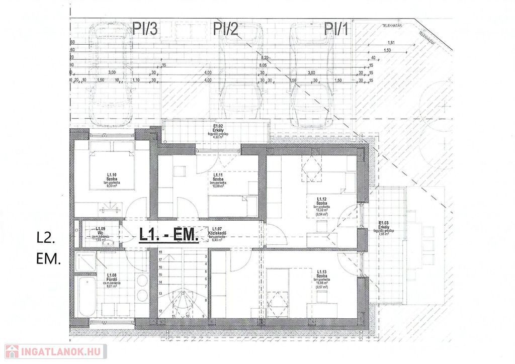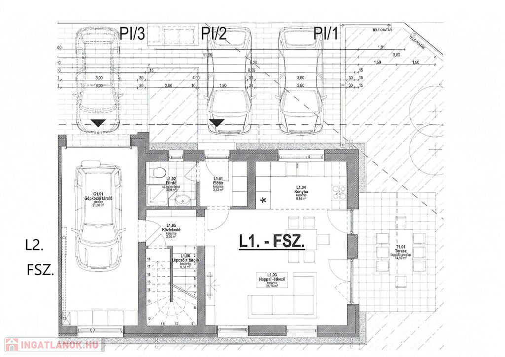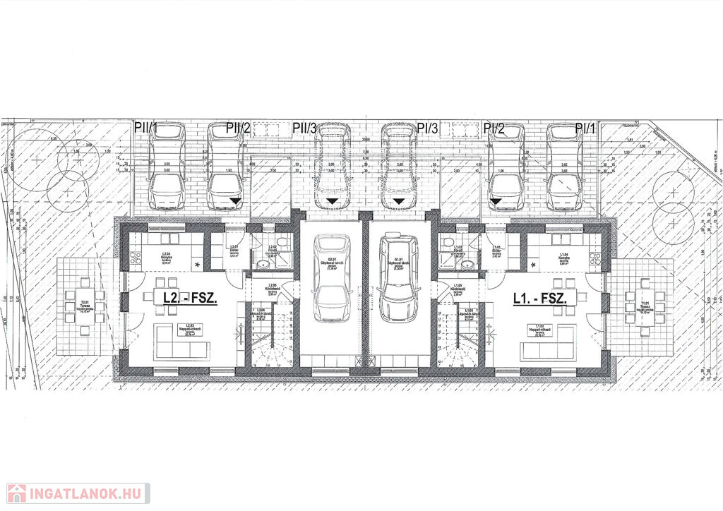 Telek méret 305 m2, melyből 155 m2 parkosítható zöldterület.