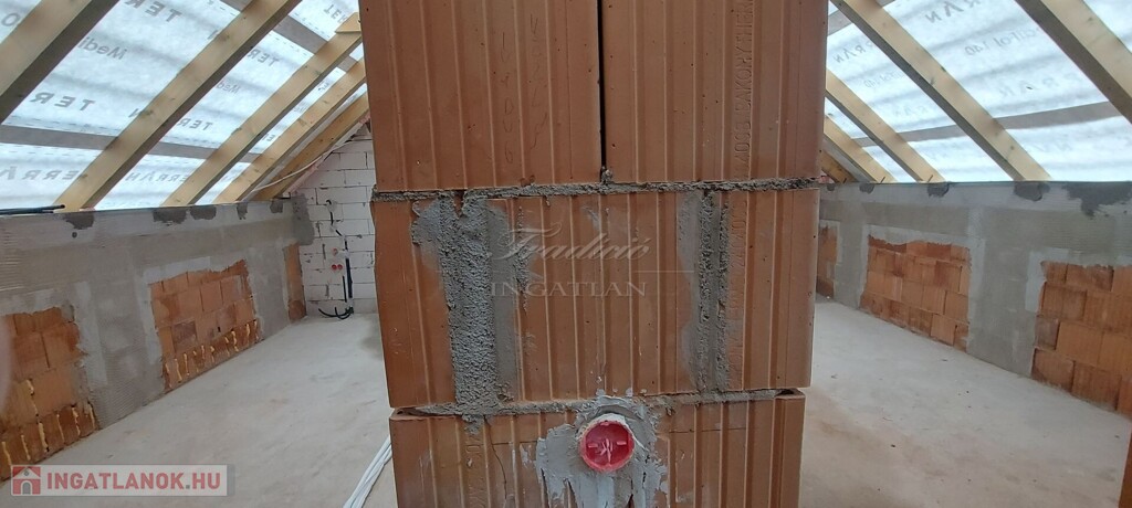 A műszaki tartalom is meggyőző: a főfalak 30-as tégla falazattal 15 cm-es külső szigeteléssel, a külső műanyag profilú, fehér színű nyílászárók 3 rétegű üvegezéssel készülnek, a tetőhéjalás betoncserép, a fűtést és a használati melegvizet 24 Kw-os kondenzációs gázkazán állítja elő, a hőleadás padlón keresztül történik- egyenletes, komfortos meleget biztosítva az egész lakótérben.
