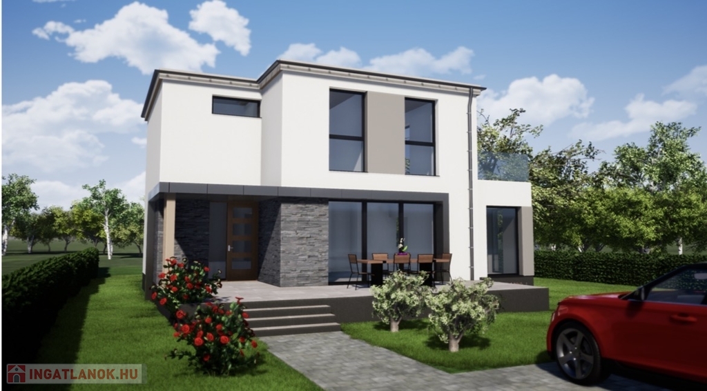 Győr-Ménfőcsanakon győri panorámával rendelkező 776 m2-es telken, kialakult lakókörnyezetben, nettó 136 bruttó 228 m2-es, 3 szoba + nappalis, 2 fürdőszobás, kiváló alaprajzi elrendezésű, modern stílusú családi ház nagy méretű tetőteraszokkal, pincével fűtéskész állapotban eladó.