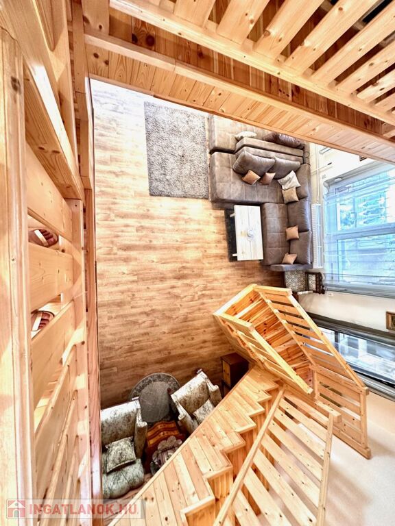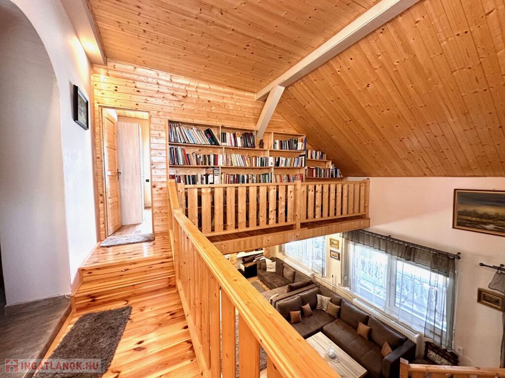 -a falak is kővel / fával burkoltak, a lépcső , a galéria és a beltéri ajtók újszerűek,