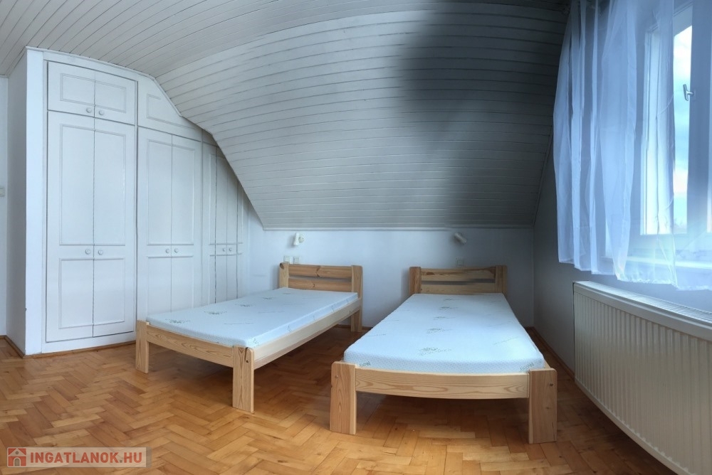 Győr-Likócs természet közeli, családi házas nyugodt övezetében, AUDI gyártól, Ipari Parktól, Belvárostól, M1-es autópályától pár perces autótávolságra, 2.100 m2-es összközműves telken lévő 2 szintes, jó állapotú épületben, összesen 9 db külön bejárattal rendelkező (10 m2; 14 m2; 17 m2, 19 m2, 20 m2 nagyságú) hálószobákból, 3 db fürdőszoba + WC-ből, méretes nappaliból/társalgóból/közösségi térből (54 m2), különálló konyhából, méretes étkezőből (17 m2), különálló kamrából, 35 m2-es TERASZBÓL, különálló pincetárolóból álló, valamint több KLÍMÁVAL felszerelt, 336 m2 hasznos alapterületű panzió/családi ház eladó.