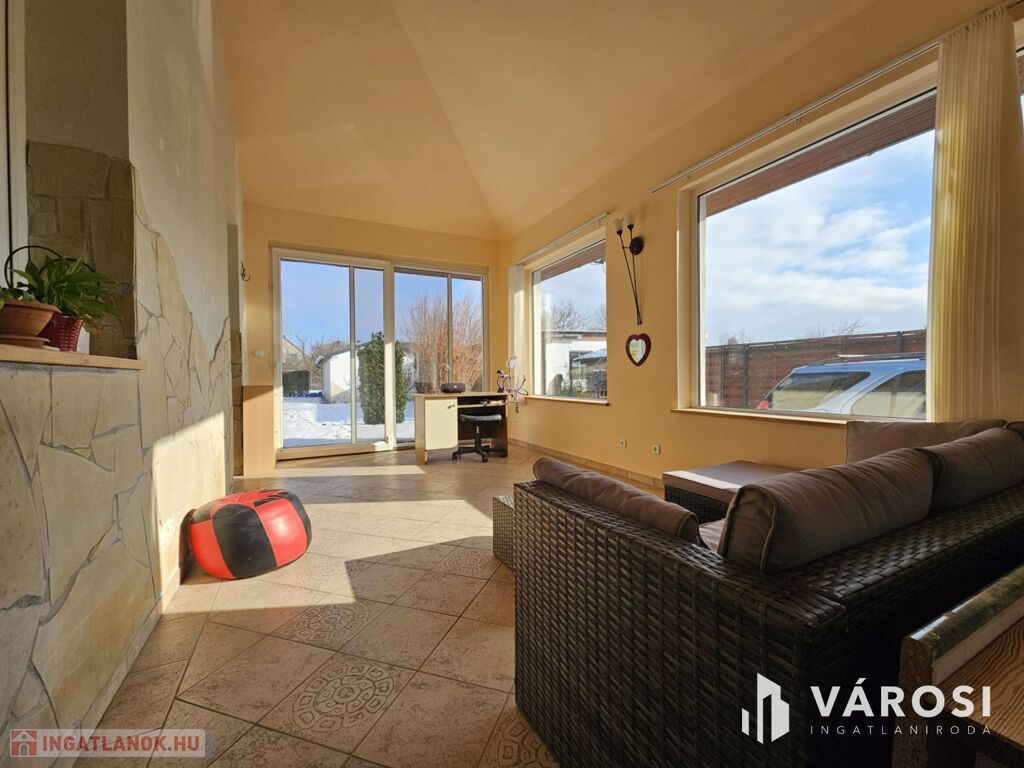 • valamint a nappaliból közvetlenül elérhető egy körben zárt, nagy üvegfelületekkel rendelkező, rendkívül világos télikert (~20 m²)