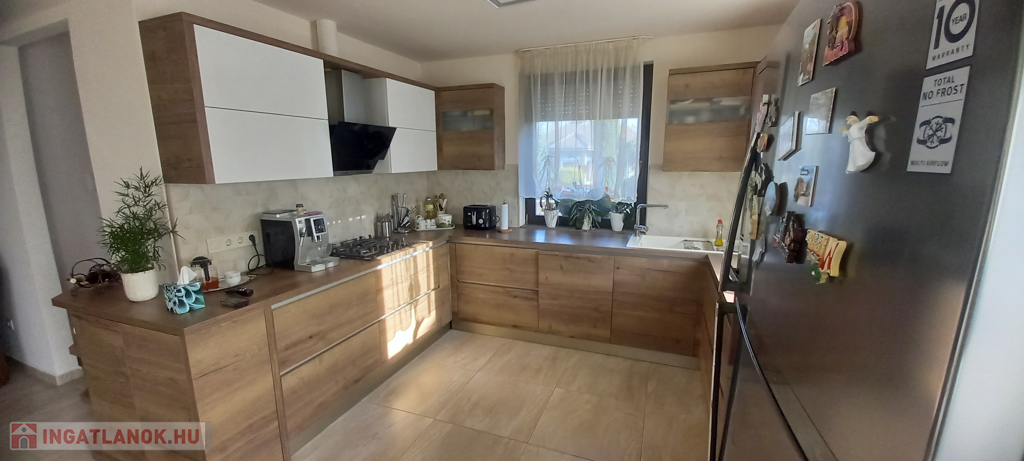 Győr kedvelt kertvárosi részén, Ménfőcsanak csendes, forgalom mentes mellékutcájában kínálom eladásra ezt a gyönyörűen parkosított 1830 m2-es telken lévő, nappali + 3 hálószobás, újszerű állapotú, 2014-ben téglából épült családi házat.