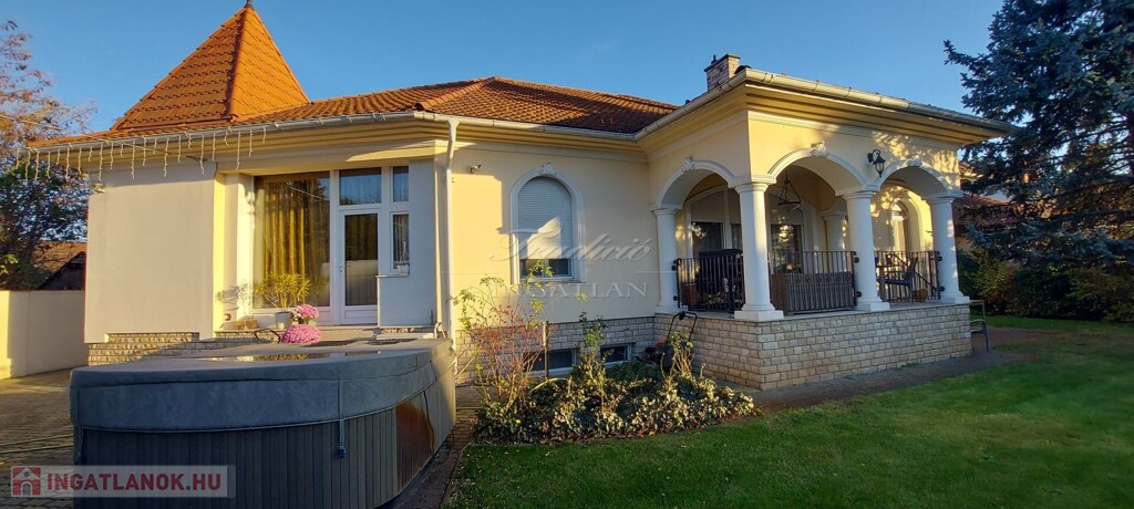 Győr-Kisbácsán nyugodt környezetben, 1331 m2-es intim-parkosított telken eladó egy 2000-ben kimagasló minőségben megépített, igényesen karbantartott, minden részletében átgondolt 175 m2 lakóterű, nappali és 3 szobás, étkező-konyhás klimatizált családi ház, amely kényelmet, biztonságot és luxust kínál egyben. Az épület alatti 145 m2-es pince kikapcsolódásra, sportolásra, hobbi célokra, rendezvények lebonyolítására kíválóan alkalmas.