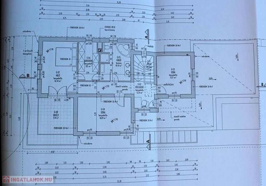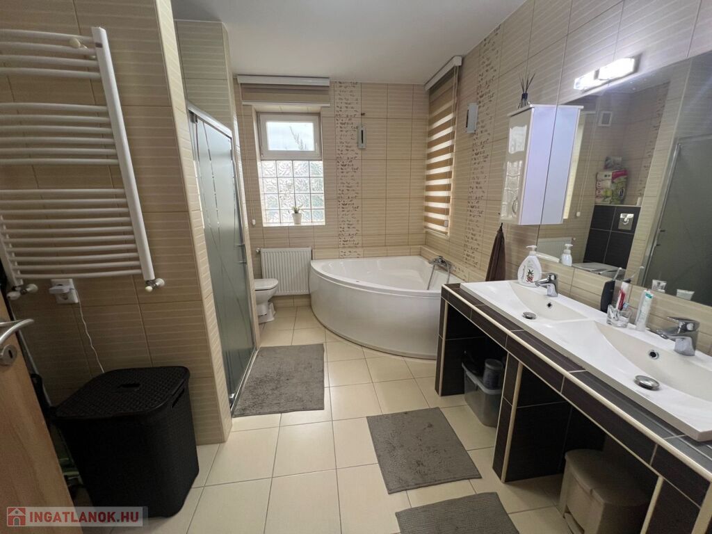 az emeleten három hálószobán kívül egy kádas, zuhanyzós fürdőszoba, valamint egy a fő hálószobából - ahonnan az emeleti teraszra is kijuthatunk - megközelíthető gardrób szoba helyezkedik el.
