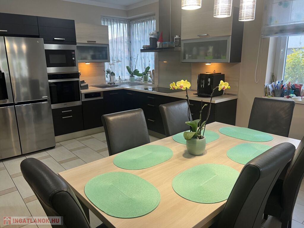 Az eladó lakóház, Győr-Ménfőcsanak, nyugodt, átmenő forgalomtól mentes zsákutcájában, újszerű építésű házak között található. A fotók között látható a ház előtti lábtenisz pálya, ami bizonyíték az utca nyugalmára. Győr Észak Nyugati városrészében, Ménfőcsanakon, minden, ami a hétköznapi élethez szükséges könnyen elérhető (bölcsőde, óvoda, iskola, bevásárlási lehetőségek, éttermek, cukrászdák stb.). Győr nyüzsgő belvárosa 7 km, az M1-es, Bécs-Budapest, autópálya 123-as csatlakozási pontja 2 km-re található.