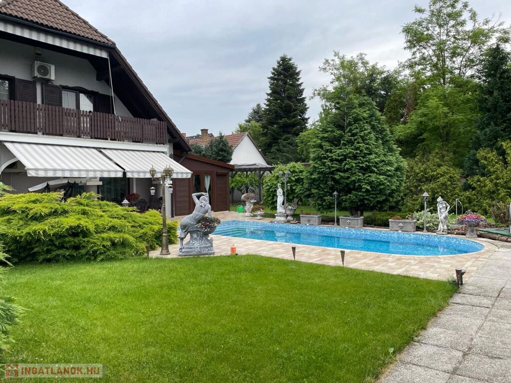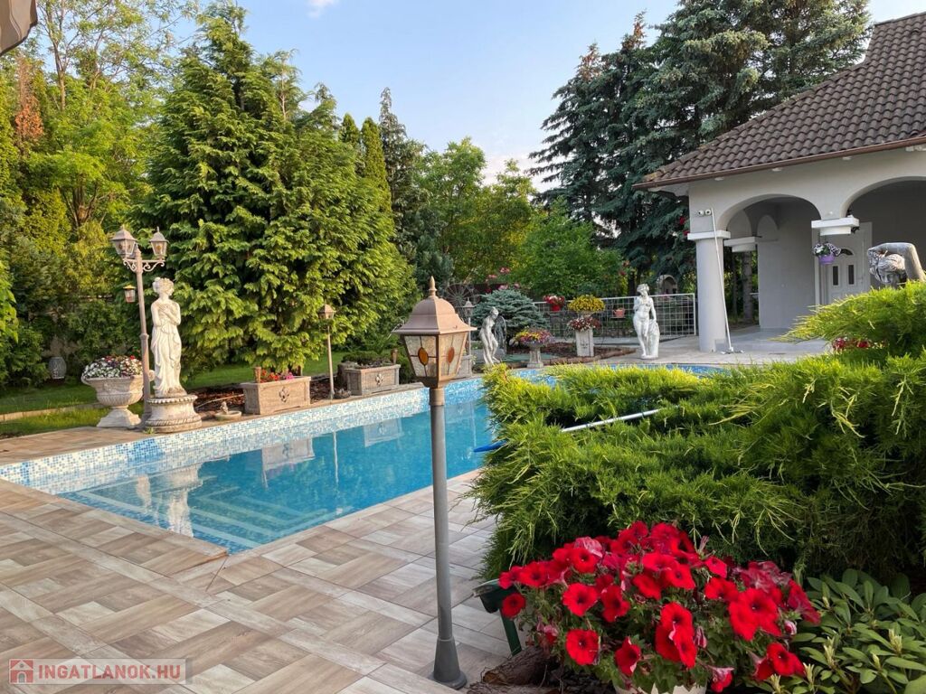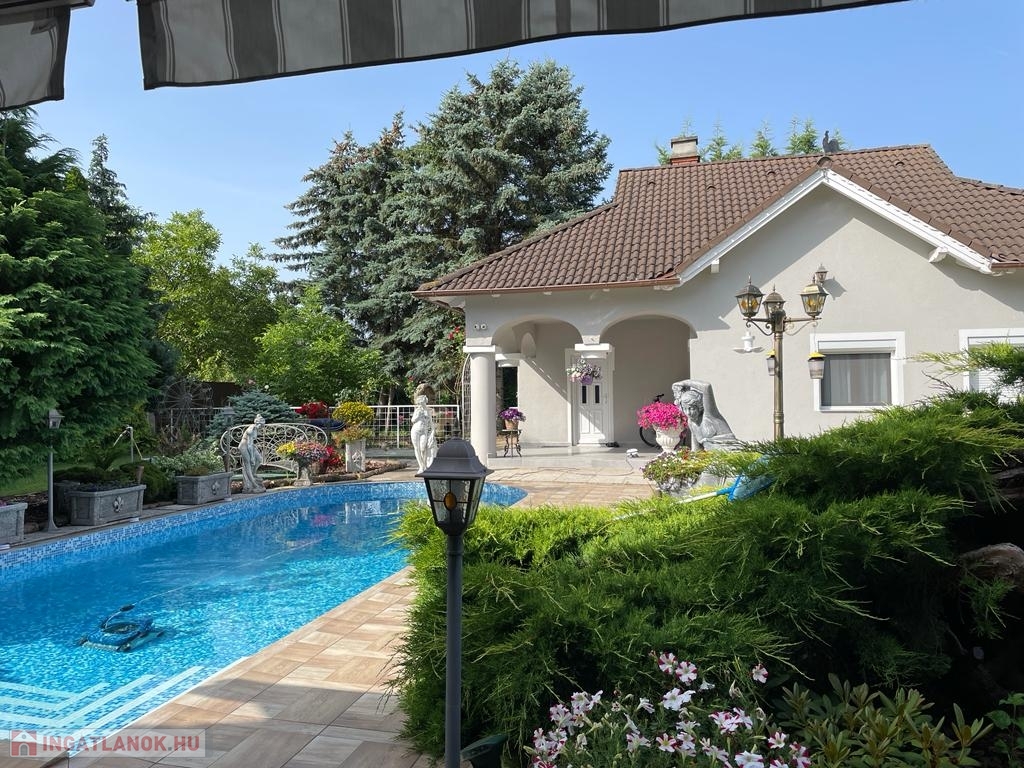 Medencével, parkosított kerttel és 40 méter utcafronttal rendelkezik.