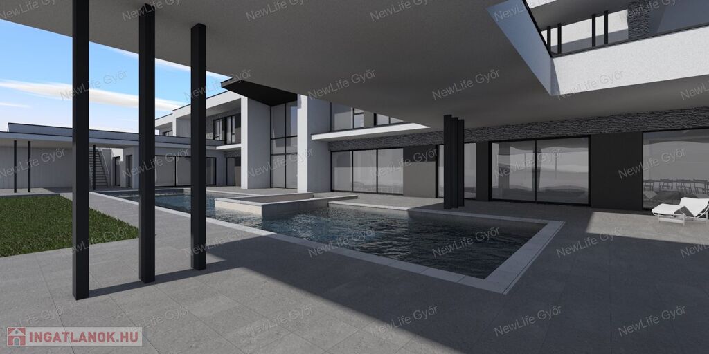 Már megépített beltéri medence is tartozik hozzá, a látványtervek szerint pedig egy egyedi kültéri medence készül, amelynek közepén grillezőhely kap helyet – a vízbe sétálva körülölel a luxus érzése.