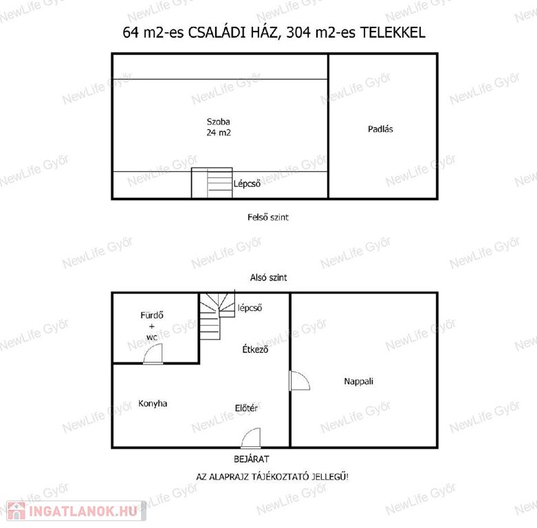 ✅ Lakótér: 64 m² (kétszintes kialakítás)