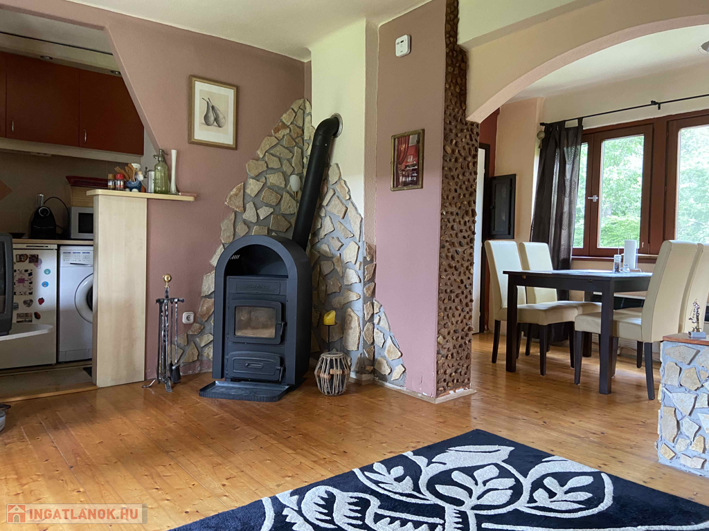 Az ingatlan fűtéséről a nappaliban helyet kapott kandalló és villanyradiátorok gondoskodnak. A meleg vizet villanybojler biztosítja.