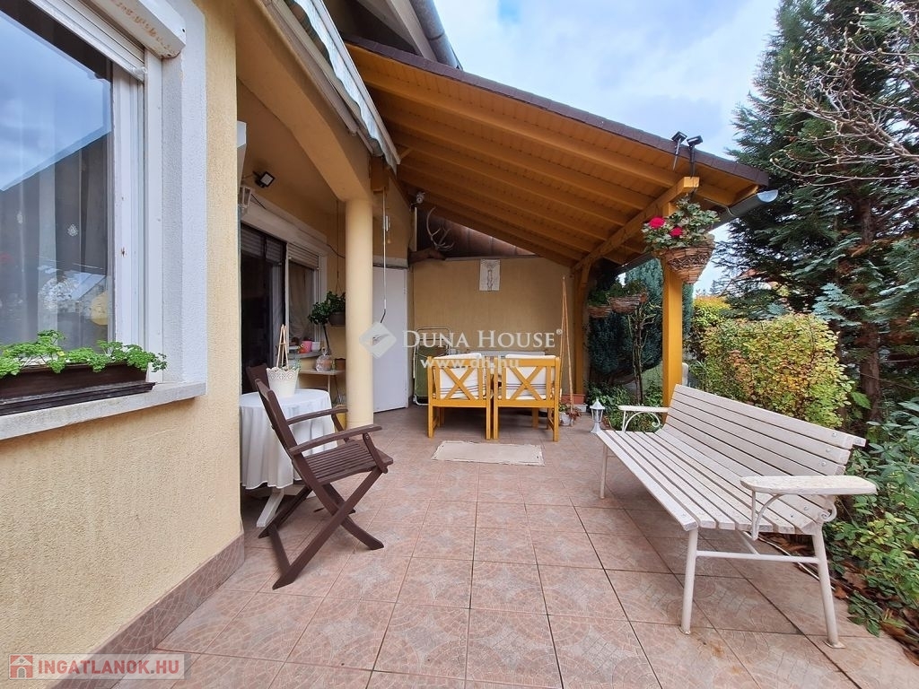 A ház minden irányból zöldövezettel ölelt, előtte saját pihenőkerttel rendelkezik, mögötte, fás, sövényes terület választja el a szomszédoktól. Nagy méretű terasz nyújt kényelmes ejtőzést a fáradt napok után, mely eső és nap ellen is véd favázas, zsindely tetős fedésével. A privát kert kellően takar a kíváncsi szemek elől, sütögetéshez, hintázáshoz, kis kertészkedéshez biztosít hangulatos teret.