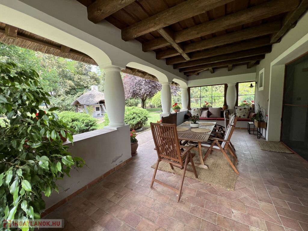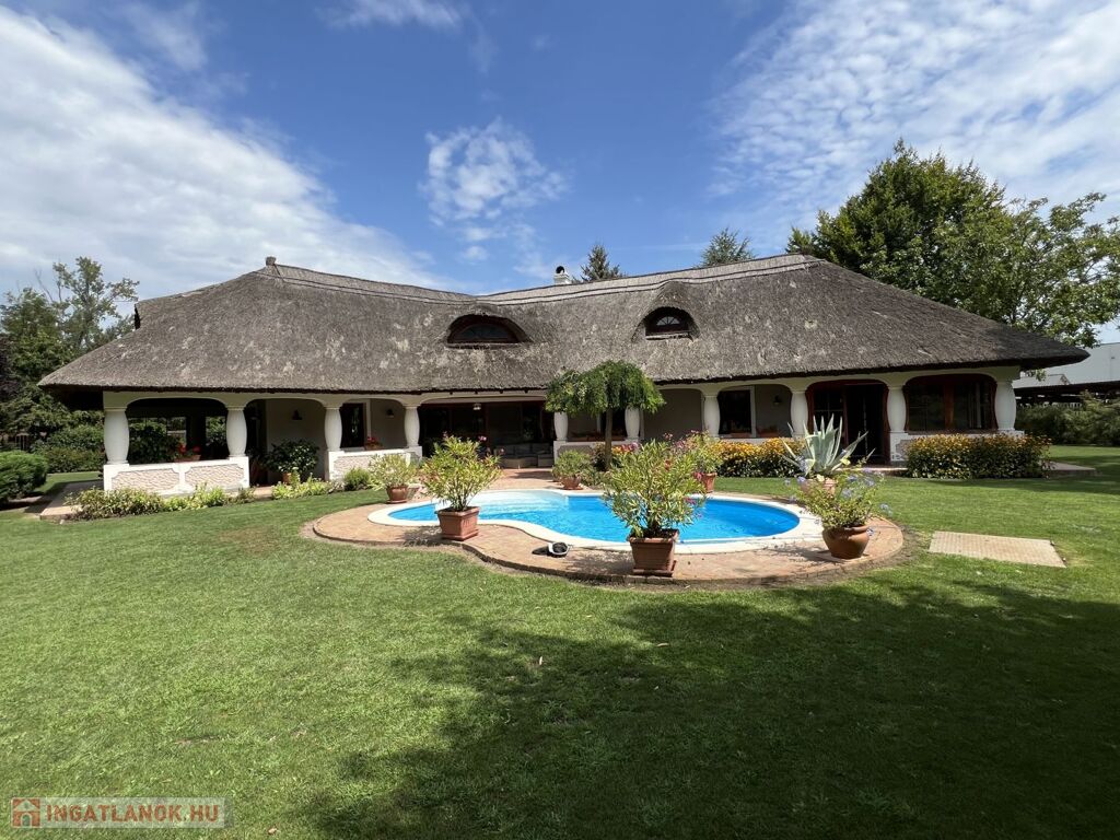 Győrladaméron zöldövezeti, természeti környezetben a Mosoni - Duna partján, 6039 m2-es, parkosított, automata öntözőrendszerrel ellátott, csendes telken, 2002 - ben épült, a meghitt, barátságos otthon melegét minden részletében magából árasztó, bruttó 333 nettó 200 m2-es, egyedi stílusban megtervezett és minőségi anyagokból kivitelezett, 3 szoba + nappalis, galériás, egyedülálló, medencés családi ház dupla garázzsal eladó.