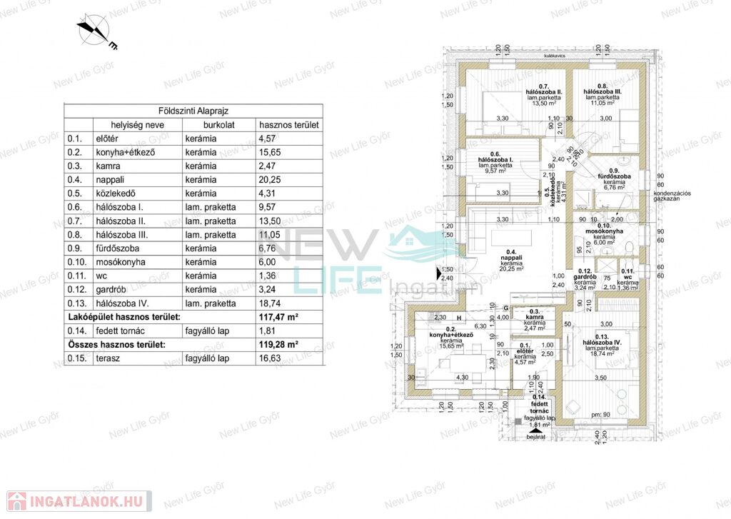 Győrladaméron, újonnan nyíló utcában, családi házas övezetben, igényes kivitelezőtől kínálom megvételre ezt az 501 m2-es telekre épülő 127 m2 alapterületű 4 hálószoba+ nappali-étkező-konyhás újépítésű házat, 16m2-es terasszal.