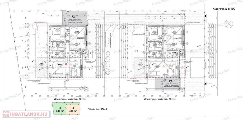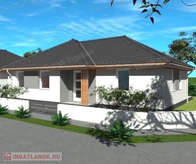 Győrság új építésű részén 90,84 nm-es nappali + 3 szobás ikerház 438 nm-es telekrészen eladó. A két ház önállóan megközelíthető, nincs közös fal.