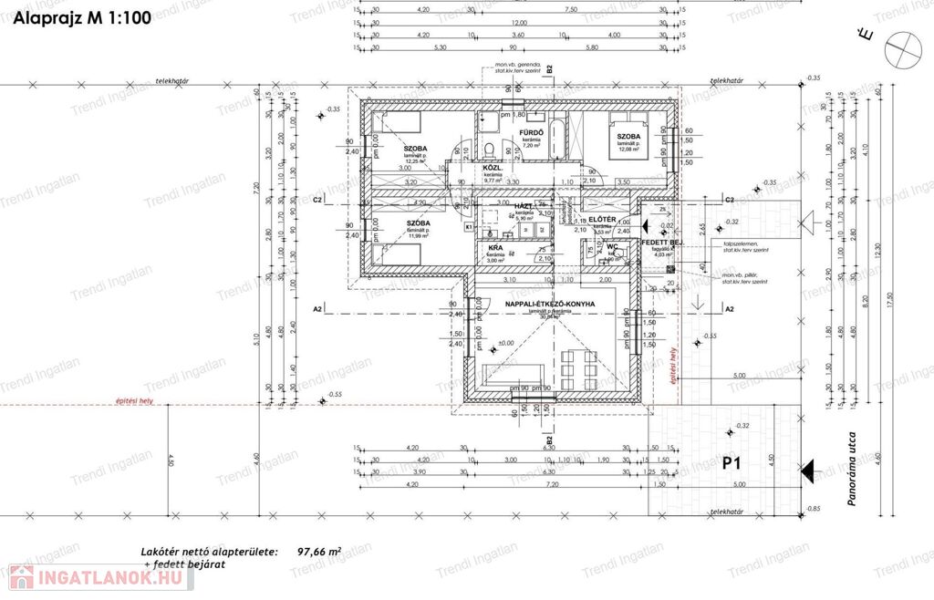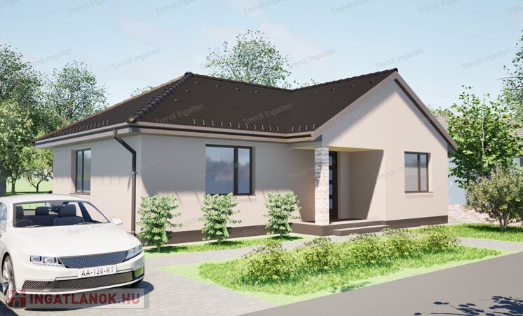 Győrság új építésű részén önálló 97,66 nm-es nappali + 3 szobás családi ház 715 nm-es telken eladó.