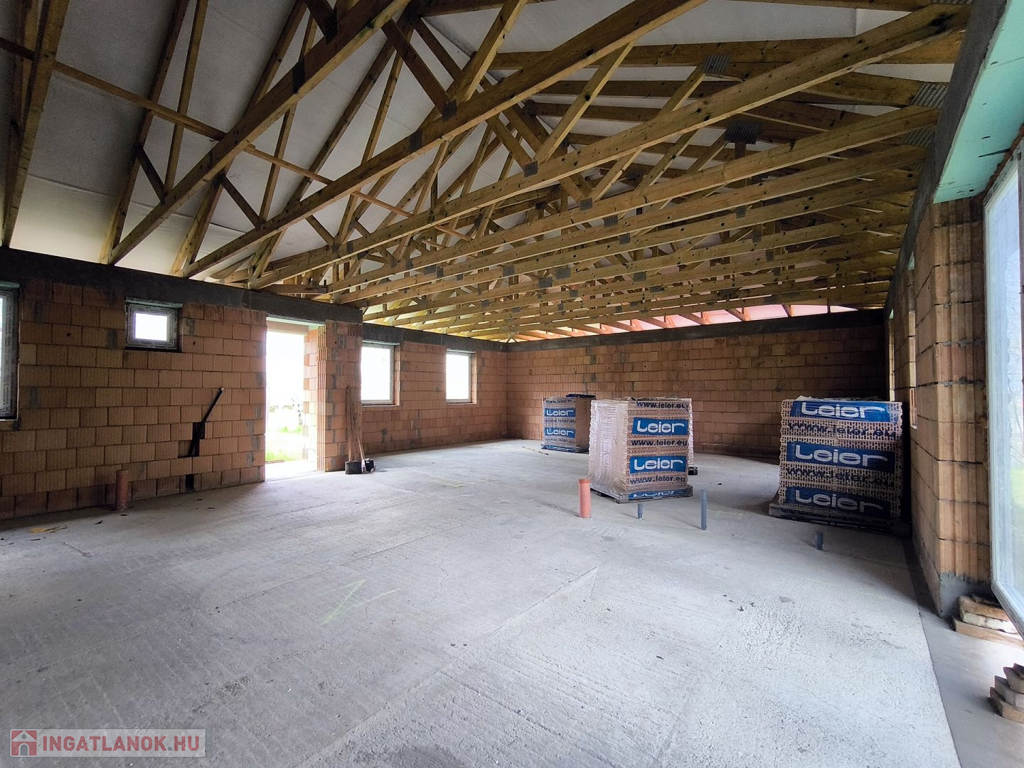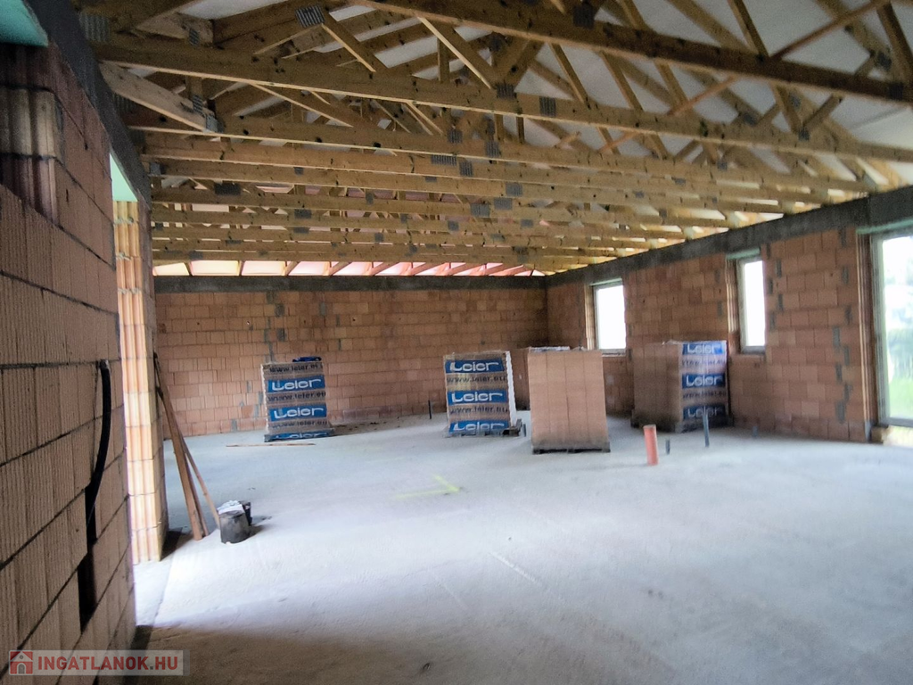 Győrújbarát csendes utcájában eladó egy épülő, energiatakarékos családi ház panorámás telekkel.