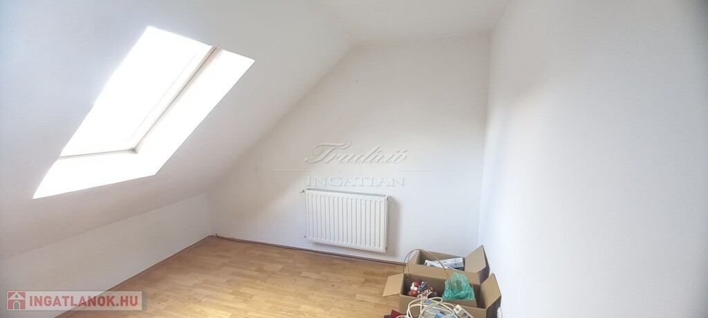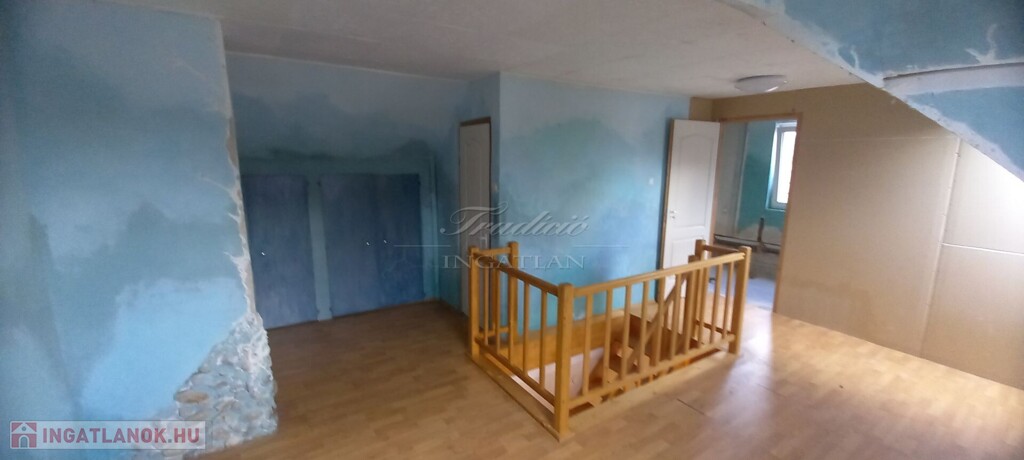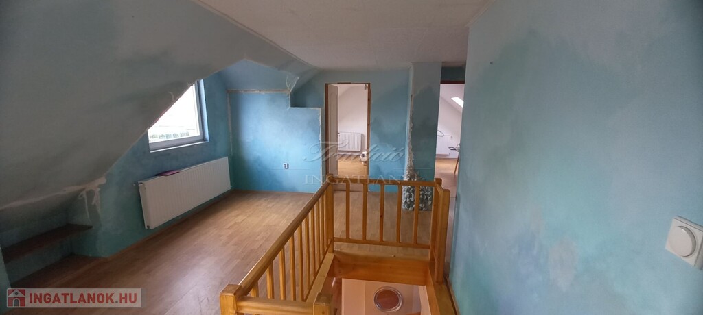 Az emeleten jelenleg két hálószoba található. Az emeleti fürdőszoba és a mosókonyha kialakítása elkezdődött, de a befejezése már az új tulajdonosra vár (így saját igény szerint alakítható)