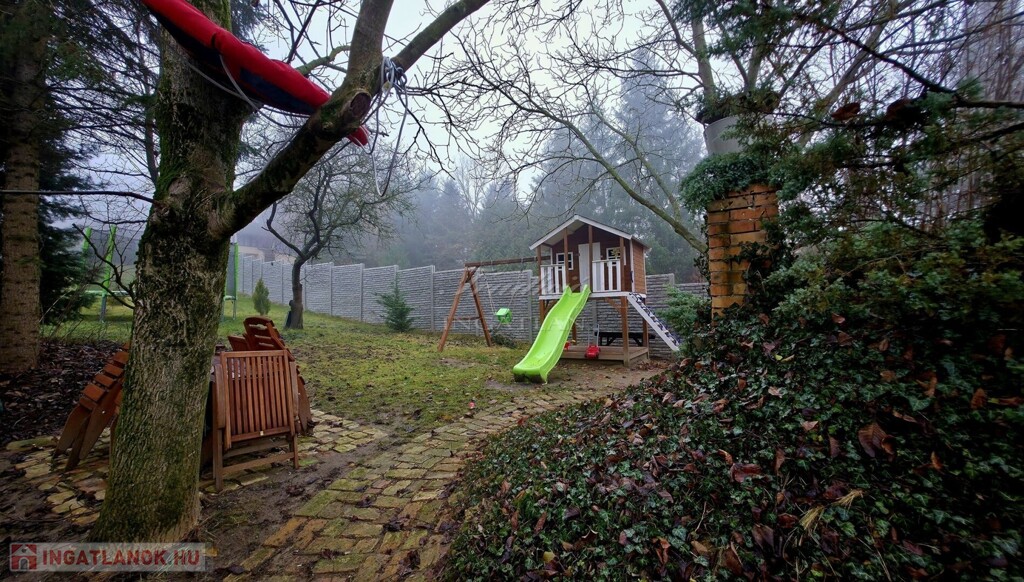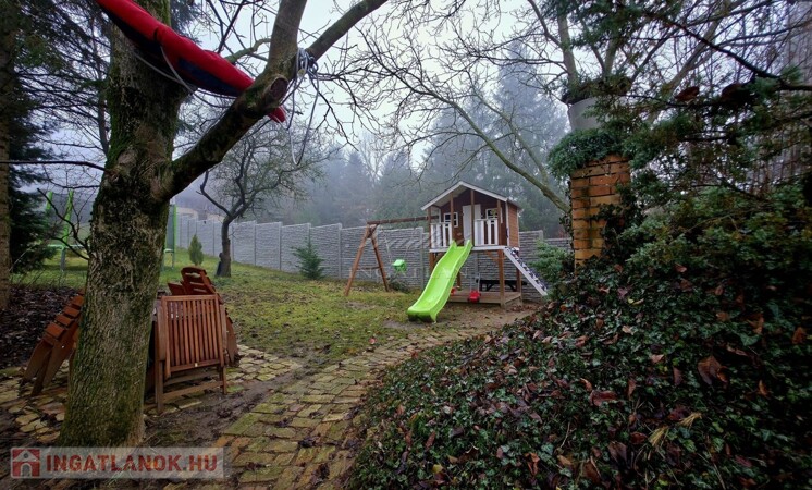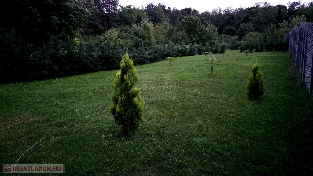 A körbekerített, borospincével is rendelkező 2145 m2-es parkosított telek egy erdőben végződik, így az ingatlan igazán természetközelinek mondható. A telek lakó falusias övezetű, ami 30 % beépítési lehetőséggel bír.