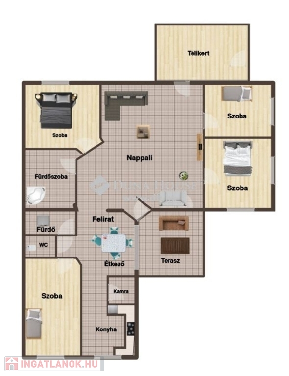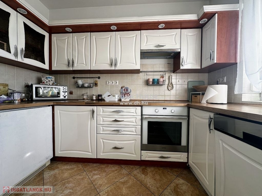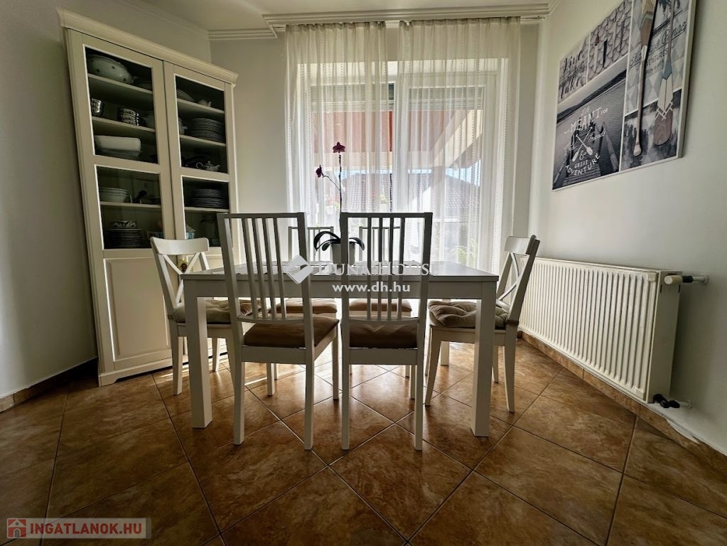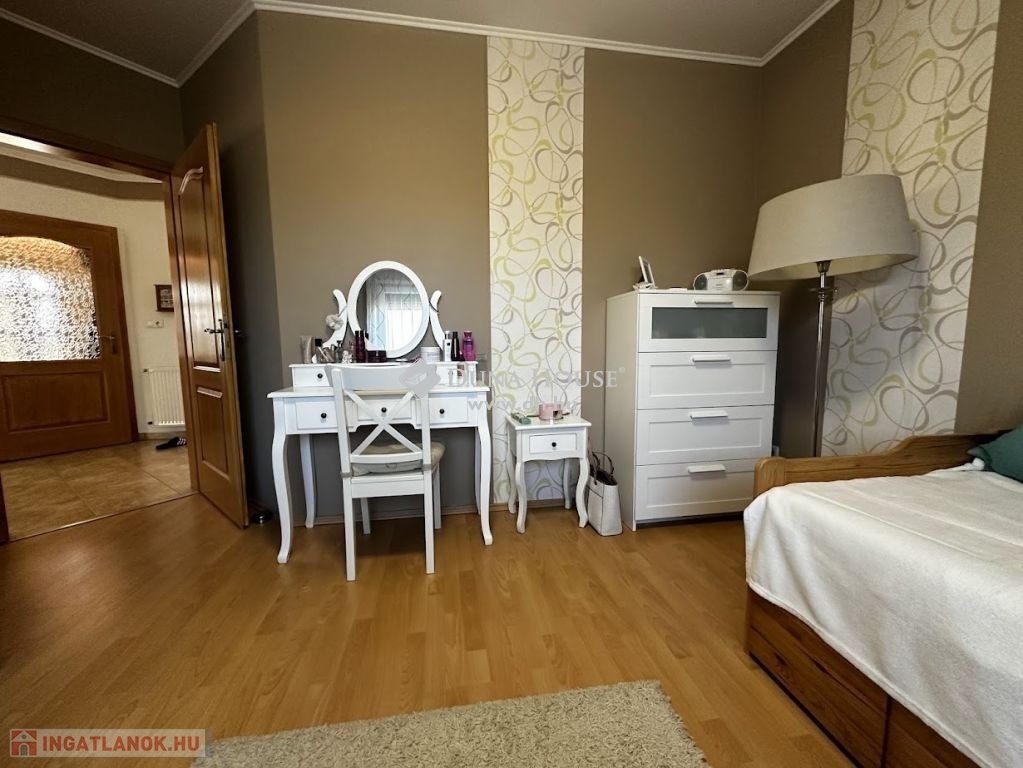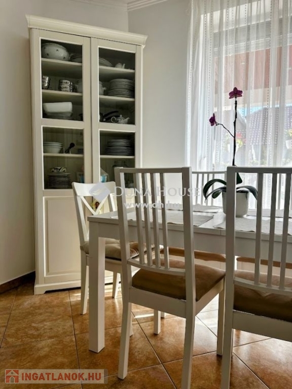 Idilli családi otthon Győrzámoly szívében – Nyugalom, kényelem és kertvárosi élet egy helyen!540 m²-es telken áll ez a 136 m²-es, tökéletes elosztású családi otthon, amely ideális választás mindazoknak, akik nyugalomra és kényelemre vágynak. Az ingatlan elrendezése: tágas nappali, étkező, konyha, két fürdőszoba (az egyik WC-vel), WC, négy szoba, kamra, napfényes télikert, valamint egy terasz, ahol élvezheti a kert nyugalmát.Jellemzők:Fűtés: gáz-cirkó radiátoros hőleadókkal, valamint 3,5 kW-os Fujitsu inverteres klíma biztosítja a hűtést és fűtéstKiváló minőségű építési anyagok: 38-as Porotherm téglafal, 5 cm hőszigetelt vakolat, Bramac cserépLaminált padló a szobákban és télikertben, járólap a többi helyiségbenMűanyag, kétrétegű nyílászárók szúnyoghálóval és redőnnyelKét fedett gépkocsibeállóKert és extrak:A kert központi eleme egy 15 m²-es medence homokszűrős gépészeti aknával, amely tökéletes nyári felfrissüléshez és családi kikapcsolódáshoz. egy 10 m²-es faház a kertben található, külön locsolóóra, valamint fúrt kút, amely gazdaságossá teszi az öntözést. A gondozott, zöld környezet pihenésre és kikapcsolódásra csábít.Miért érdemes Győrzámolyon otthont venni?Győrzámoly a nyugodt, biztonságos környezetéről híres, remek választás mindazok számára, akik városi közelséget, de falusias nyugalmat keresnek. Könnyű megközelíthetősége Győrhöz ideális azok számára, akik gyorsan elérhető munkahelyet vagy oktatási intézményt keresnek, így élvezik a természet közelségét. A környéken kiváló iskolák, óvodák, bevásárlási lehetőségek és szabadidős programok találhatók, melyek biztosítják a kényelmes életminőséget minden korosztály számára.