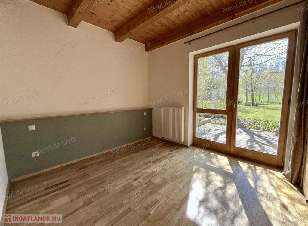 Az ingatlan kiváló elhelyezkedésű csendes zsákutcában, közvetlenül a töltés mentén fekszik; 4 perc sétára található a buszmegálló, faluközpont 10 perc sétával elérhető. Autóval Győr belvárosa 15 perc alatt közelíthető meg.