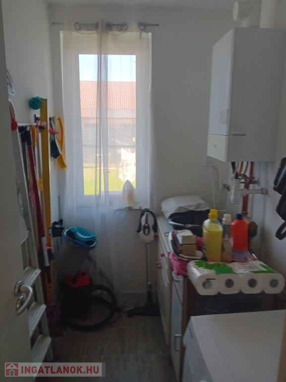 A 30-as Porotherm téglából épült, 10 cm Dryvit szigeteléssel rendelkező ingatlan gazdaságos fűtéséről a háztartási helyiségben helyet kapott Sauiner Duval típusú gázkazán gondoskodik.