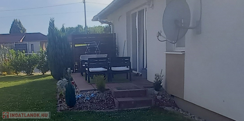 Az ingatlan egy 655 m2-es, szépen karbantartott, füvesített telken helyezkedik el, ahol a ház mellett még két darab kerti tároló is helyet kapott. A ház előtt egy tágas parkoló lett kialakítva, ahol több gépkocsi kényelmes parkolása is megoldható.
