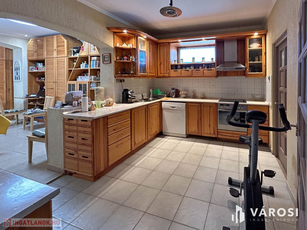 Eladásra kínálom Gyula Újváros részén található 212 m2 alapterületű, egyedi tervezésű, igényesen kialakított 4 szobás + nappalis családi házat. Az ingatlan utcafronti része vegyes falazatú, majd egy korábbi bővítés során nyerte el jelenlegi formáját, mely már téglából épült hozzá. Az építkezés során stabil alapokat fektettek le, a régi falazatot megerősítették, aláfalazását és vízszigetelését is kivitelezték. A betonfödémnek köszönhetően a padlástér beépítésére is lehetőség nyílik.