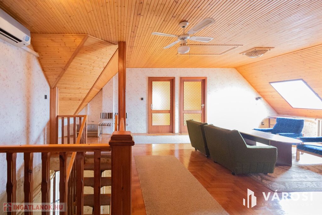 Eladó Gyula város csendes, de mégis jól megközelíthető részén, a Gyula Fürdőövezet városrészben egy 240 m² alapterületű, 2 szintes, jó szerkezetű családi ház. Az ingatlan 749 m²-es telek mérettel rendelkezik, így elegendő helyet biztosít a meglévő pincének, a melléképületnek, garázsnak és a jelenleg is telken található gyümölcsfáknak is. A házban összesen 7 szoba, 3 nappali, 2 konyha, 3 fürdőszoba, 4 mosdó és számos gardrób, tároló, dolgozószoba is helyet kapott. Az ingatlan 1990-ben épült, nagyon masszív beton lábazatra, tégla falazattal, szerkezetileg jelenleg is kifogástalan állapotban van. A külső nyílászárók fából készültek két rétegű üvegezéssel, melyek közül az utcafronti ablakok redőnyözöttek. A fűtésről két nagyteljesítményű gázkazán gondoskodik radiátor hőleadókkal, illetve egy nagyméretű, szép állapotú csempekályha is található a házban, mely a téli hónapokban az egész ingatlant felfűti. A nyári időszakban 2 db klíma segíti a hűsölést. A melegvíz bojlerről megoldott, melyek működtetése éjszakai áramról biztosított. A házban rézvezetékek találhatóak, az áramellátás 3x16A. Kedvező kialakításának köszönhetően akár két teljesen külön lakrészre bontható, de apartmanház kialakításához is tökéletes adottságokkal rendelkezik.