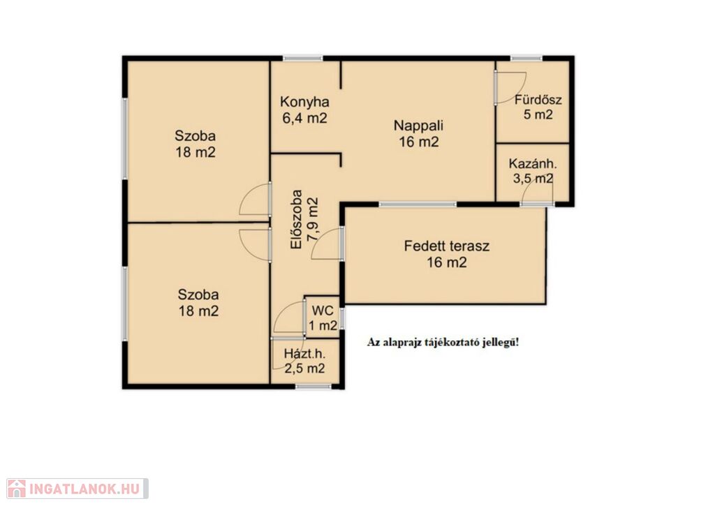 Az ingatlanban 2 nagy szoba és egy amerikai konyhás nappali helység található, amelyek külön-külön bejárattal rendelkeznek. A konyhához tartozik egy szép, hűvös kamra is. Az ingatlan fűtéséről egy Westend gázkazán és tetszés szerint egy vegyes kazán gondoskodik. A házban a felújítás során a villamos hálózat korszerűsítése, nyílászárók cseréje megtörtént. Az ingatlanban a nappali részen egy új inverteres (hűtő-fűtő) klímaberendezés is beépítésre került.