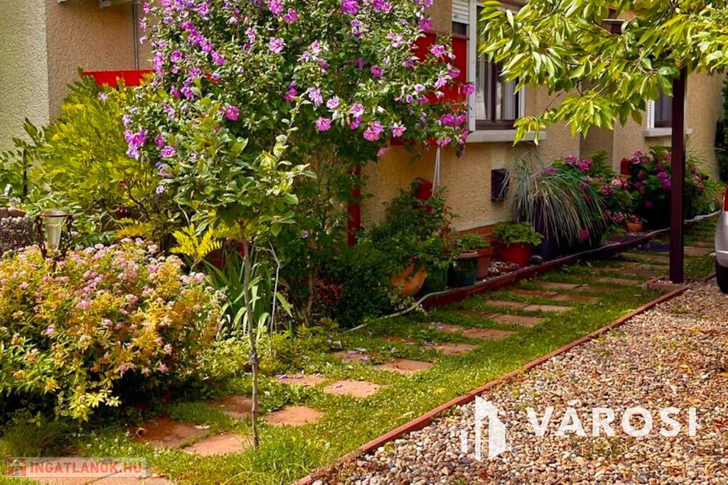 Gyulán a belvároshoz közel eladóvá vált egy praktikus elrendezésű ikerház. Az ingatlan 403 nm alapterületű telken helyezkedik el. A ház a 80-as években épült tégla falazattal, alapterülete 114 nm, melyből a földszint 71 nm (1 nappali - parketta, 2 hálószoba - parketta, 1 konyha - járólap, 1 fürdő - járólap, 1 külön wc - járólap, 2 kamra - járólap, 1 előtér - járólap) , az emelet pedig 43 nm (1 nappali loggiával, 1 hálószoba, 1 fürdő, 1 külön wc, 1 előtér, 1 főzőfülke, 1 kamra). A parkosított kertben egy kocsibeálló, egy fedett terasz és szerszámtároló mellett cserjék, örökzöldek és magaágyás is helyet kapott, melyek öntözése külön mérőóráról megoldott.